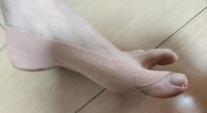 外反母趾対策のテーピングをするとこんな感じ。